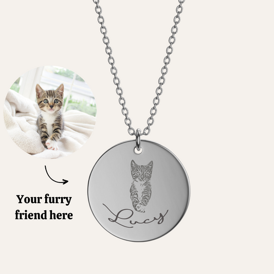 Pet Portrait Pendant - 18k Gold Plated Engraved Necklace