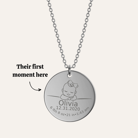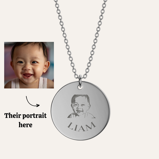 Baby Portrait Pendant - 18k Gold Plated Engraved Necklace