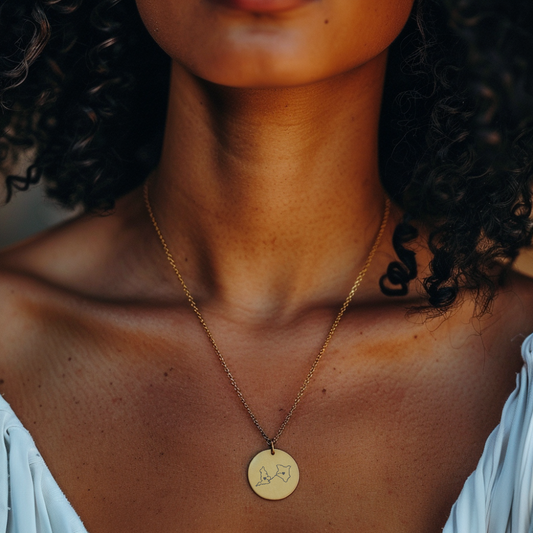Star Map Pendant - 18k Gold Plated Engraved Necklace